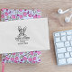 This "Return Address" rubber stamp features a Donskoy cat with custom name and address.