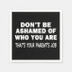 For the sarcasm lover in all of us. Check out this witty “Don’t Be Ashamed of Who You Are. That’s Your Parent’s Job” design on apparel and gifts.