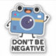 Don't Be Negative Funny Camera Pun features a cute camera reminding you not to be negative. Perfect pun gift for family and friends who love cute camera puns.