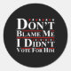 Don't Blame Me - I Didn't Vote For Him Funny Anti Classic Round Sticker