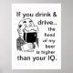 Anti-drinking and driving poster with retro cartoon of a man with a frothy beer.