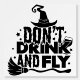 A plain, minimalist and striking typography design featuring the black silhouette of a witches hat and broom plus a glass of wine placed around the lettering that reads, don't drink and fly. This funny play on words is a great way to remind guests not to drink and drive at your Halloween birthday party.
