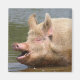 pig in water with mouth open as if talking or eating