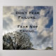 Don't fear failure. Fear not trying. Motivate yourself with this inspirational poster featuring original photography. Customize the lettering as you wish.