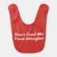 This allergy alert bib provides a simple warning that could save a baby's life. This red baby bid says 'Don't Feed Me Food Allergies"