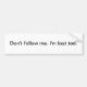 Bumper sticker with the statement "Don't follow me. I'm lost too."