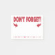 Don't forget notes in attention getting bold red type with arrows and exclamation points are a reminder to yourself or any forgetful person you know to remember what to bring or do when it's really important. Place a note on the door to remember what you need to bring with you when you leave. Or use to remind your kids of an important task.