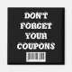 Save a buck! "Don't forget your coupons" fridge magnet will make sure you don't leave home without them. Works to remind you of your digital coupons as well.