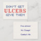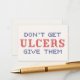 Don't get ulcers, give them! Fun advice stitched in retro cross stitch embroidery needlework on white Aida cloth background.