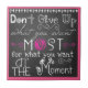 Don't Give Up chalkboard look ceramic tile with cool white text on a chalkboard look background and a pop of bright pink. This motivational and inspirational design reads "Don't give up what yow ant most for what you want at the moment"!