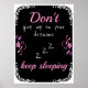 Black and Pink decorative poster with the saying: "Don't give up on your dreams, keep sleeping"