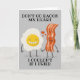 Don't go breaking my heart I couldn't if I fried eggs and bacon humor greetings card from Ricaso ideal for Valentines Day