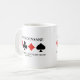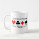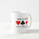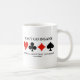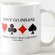 If you or your bridge partner has ever misplayed a bridge hand due to thinking about how the last hand should be played, you'll enjoy this wry bridge advice mug featuring the four card suits (heart, club, diamond, spade) along with the saying "Don't Go Insane Thinking About That Last Hand". Memorable mug for any bridge player who has kept thinking about the last hand played, much to the detriment of the hand that is currently being played!