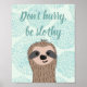 Don't Hurry Be Slothy Cute Sloth Quote Poster
