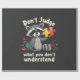Autism support, awareness month, raccoon theme, puzzle piece symbol, inclusivity message, neurodiversity advocacy, understanding disabilities, special needs support, be kind, acceptance