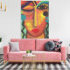 My colorful abstract acrylic painting of a woman on OSB board is printed on wrapped canvas