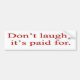 Don't laugh, it's paid for Bumper Sticker