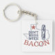 Texas bacon-lover design with an old west look. Red and blue graphic of a lone star, an outline of Texas, and a bacon strip.
