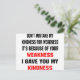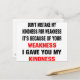 dontmistakekindnessforweaknessitsbecauseyourgave