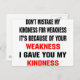 Don't Mistake My Kindness For Weakness. It's Because Of Your Weakness I Gave You My Kindness