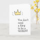 NewParkLane - Cute divorce or break up card, with a little yellow crown and quote 'You don't need a King to be a QUEEN!' in a fun script typography. The inside says 'You've got this!'. Add your name or your own inspirational message for a personalized design.