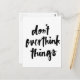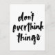 "Don't overthink things." Sometimes we just need a little quote to remind ourselves. With the beautifully hand lettered calligraphy makes this a special and memorable gift for our loved ones.