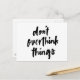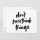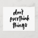Don't overthink things Inspirational Quote Postcard