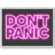 The words Don't Panic in neon lights