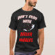 My 11 yo wore adult XL (5’7” 165#). The 8yo is small framed. She wore adult small and tied it in the back. Grandma wore adult large with long sleeve shirt underneath. Tall girl adult medium. Dark haired male adult large. Good quality dark Heather gray, Gildan brand shirt. -it was next up from basic choice and cost about $20 per shirt. Not too thick or thin. Washed and dried well, no major shrinkage. Not see-through. Can wear a bra under it fine. Screen print is just as shown and well done, front and back.