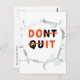 The words "don't quit" punch through the paper with unyielding force - slash through present with a slogan - do it - a reminder of strength and resilience. Slight grunge effect.
