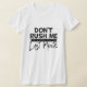 The material is a great quality that is hard to find with most tee shirts. Fabric was not see-through or thin at all, but was also very soft and comfortable. The shirt description states that it runs a little small, so I sized up one size for a perfect fit! I would definitely buy this type of tee shirt again because I love the fit and high quality fabric that I cannot find anywhere else. The printing was perfect and just as pictured. Loved the cute quote and really enjoy the tee in both the quality and design. I love quirky typography designs and funny quotes and I am extremely pleased with the overall quality and value I get at Zazzle!