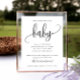 This easy shower game sign features a script heading and your custom text. Use the template form to add your personalization and to change any of the text