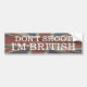 Don't Shoot I'm British bumper sticker for Brits living in (or visiting) the USA. This sticker doesn't mean you don't have to stay in your car, put your hands on the top of the steering wheel, splay your fingers, and make no sudden movements. Nor does use of this sticker guarantee that you won't be shot for being a smart-ass colonial.
