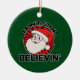 Don't stop believin' santa claus ceramic ornament