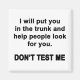 For the sarcasm lover in all of us. Check out this witty “I Will Put You in the Trunk and Help People Look for You. Don’t Test Me.” design on apparel and gifts.