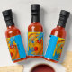 A sampling of hot sauces with a label designed using an original painting created by the artist-designer titled "Don't Touch It". This fun art adds a bit of whimsy and humor to the product and makes a fun gift for friends and family.
