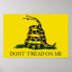 This poster displays the famous flag "Dont Tread On Me' with the iconic rattle snake.
