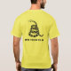 Shirt featuring the Dont Tread on Me slogan on back and front pocket.