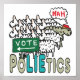 Don't Vote design shows the sheep queuing up to vote while our awake hero goes the other way. Underneath, the word Polietics tells you all you need to know about this pointless corrupt system. Stop voting for them.
