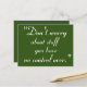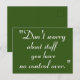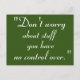 This is a cool forest green color inspiring quote postcard that says 'Don't worry about stuff you have no control over' in white cursive letters.
