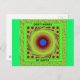 The image prominently features the uplifting phrases "DON'T WORRY" at the top and "BE HAPPY" at the bottom. At the center lies a vibrant, circular kaleidoscopic pattern, framed by a bold green square adorned with small blue circles at each corner. The entire design is set against a bright green, textured background, creating a balanced and centered composition that draws the eye.
