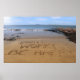 dont worry be happy inscribed on the beach with waves in the background on a hot sunny day from the morrbyte image collection