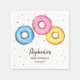 These cute baby sprinkle paper napkins are decorated with watercolor donuts in pink, blue, and yellow.