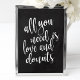An elegant cutting edge wedding sign, features the text "All you need is love and donuts" in a extroverted script font, the brush texture adds a spontaneous and playful feeling. The background color can personalized according to your needs and preferences, please contact me if you have any special request.