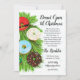 Beautifully illustrated invitation with donuts, candy canes, and pine branches on a snowy textured background.