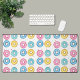 This fun desk mat is decorated with a donut pattern of pink, blue, turquoise, and yellow donuts on a colorful sprinkle background. Perfect for your favorite donut lover!