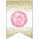 Donut Gold Sprinkles Happy Birthday Banner featuring watercolor illustration of a pink donut with gold sprinkles. Part of a collection.