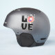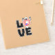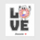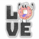 Grunge retro style illustration with white "Love" test design and colorful cute donut mascot decoration