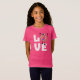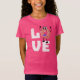 Grunge retro style illustration with white "Love" test design and colorful cute donut mascot decoration