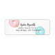 Cute return address label for a donut theme birthday party or baby shower featuring doughnut illustration with sprinkles.